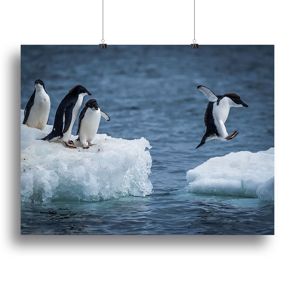 Home > Adelie penguin jumping between two ice floes Canvas Print or Poster